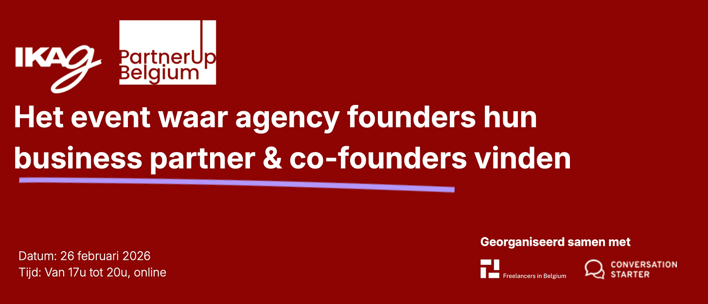Freelancers in Belgium (17.000+ leden) organiseert dit event samen met IKAg, het netwerk voor agency founders in België & Nederland.